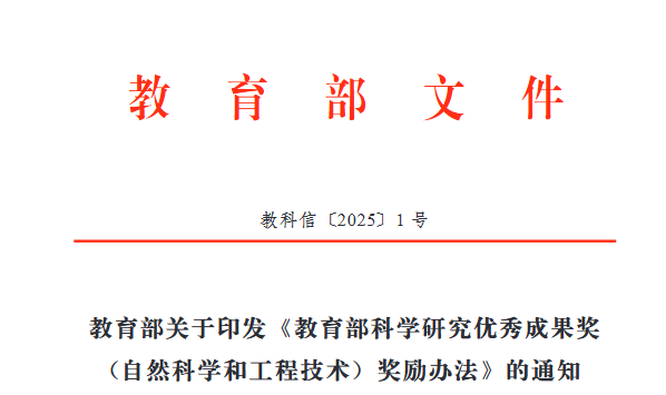 近日,从多所高校官网处获悉,教育部印发《教育部科学研究优秀成果奖 (自然科学和工程技术)奖励办法》的通知。本办法自2025年12月1日起施行,2019年11月印发的《高等学校科学研究优秀成果奖(科学技术)奖励办法》(教技〔2019〕3号)同时废止。