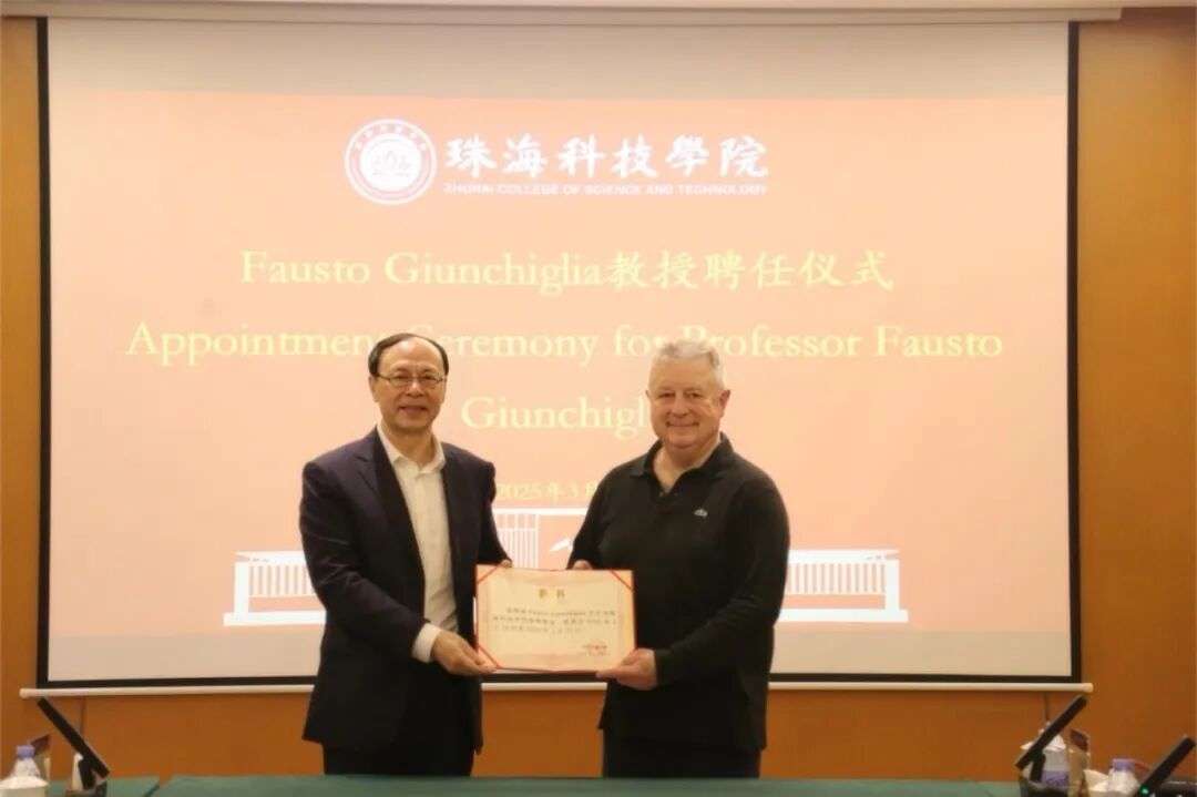 2025年3月,Fausto Giunchiglia教授正式受聘为珠海科技学院特聘教授。Fausto Giunchiglia教授是人工智能领域的国际知名学者,长期致力于人机共生、知识表示、语义匹配、跨语言知识融合等前沿方向的研究。此次当选,这是中国学术界对其在人工智能领域卓越贡献的高度认可。