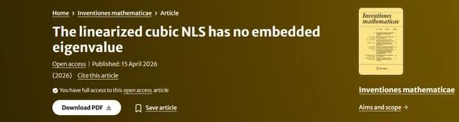 该研究聚焦于三维三次非线性薛定谔方程,严格证明了与之相关的线性化算子ℒ在本质谱中不存在嵌入特征值。这一结果直接验证了Schlag于2009年在《数学年刊》上构建中心稳定流形时所依赖的核心谱假设,彻底解决了一个困扰非线性色散方程领域多年的核心猜想,为基态孤子附近的无条件稳定性补上了最后一块分析基石。