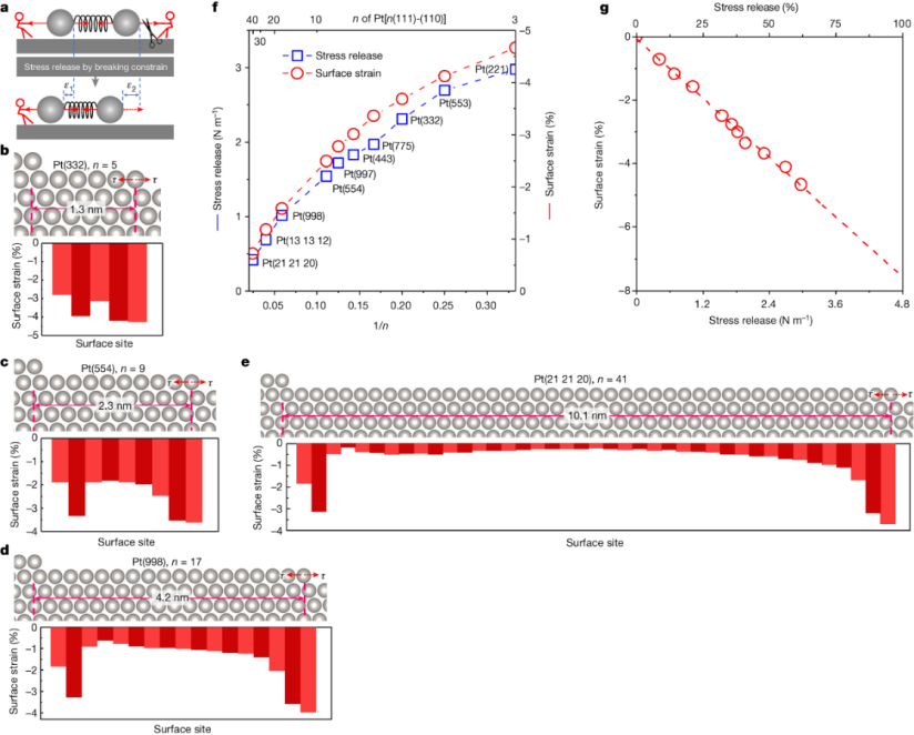 为了验证表面应力释放产生非均一应变场和原子位点反应的特异性对调节催化性能具有灵活性和普遍性,他们进一步通过在铂台阶表面的台阶边缘沉积杂质金原子,利用外部应力来驱动应力释放,调控催化性能。Marc Koper教授团队通过实验进一步验证了本工作中的理论预测,证实了操控表面应力和应变场是调节对表面应变敏感的化学反应的一种有效策略。该研究对认识催化活性位和多相催化剂的设计提供了新的视角,使多相催化剂的预测和计算设计更加精准。