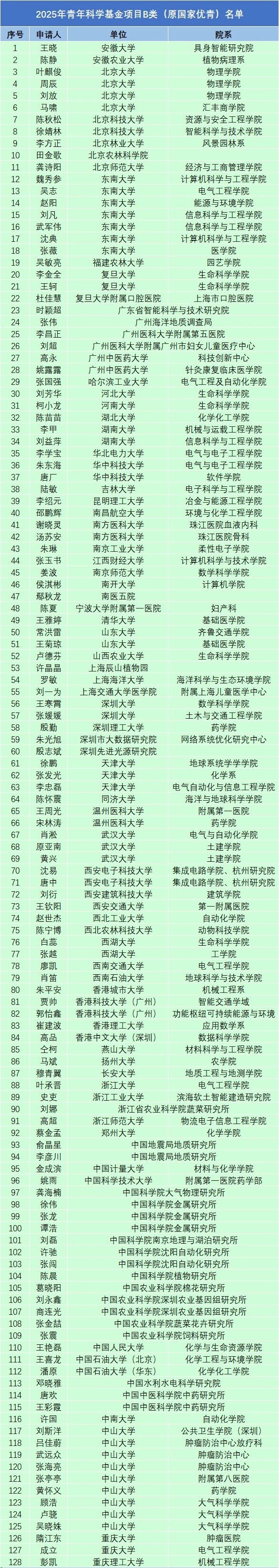 国家自然科学青年科学基金项目(B类)(原国家优秀青年科学基金项目),也被称为“小杰青”,是国家杰出青年基金的铺垫性科技支撑基金。为进一步贯彻落实国家中长期人才发展规划纲要的部署,加强对创新型青年人才的培养,完善国家自然科学基金人才资助体系,自然科学基金委决定自2012年起设立优秀青年科学基金项目。作为人才项目系列中的一个项目类型,优秀青年科学基金项目与青年科学基金项目和国家杰出青年科学基金项目之间形成有效衔接,促进创新型青年人才的快速成长,主要支持具备5~10年的科研经历并取得一定科研成就的青年科学技术人员,在科研第一线锐意进取、开拓创新,自主选择研究方向开展基础研究。2025年起,优秀青年科学基金项目更名为青年科学基金项目(B类)。