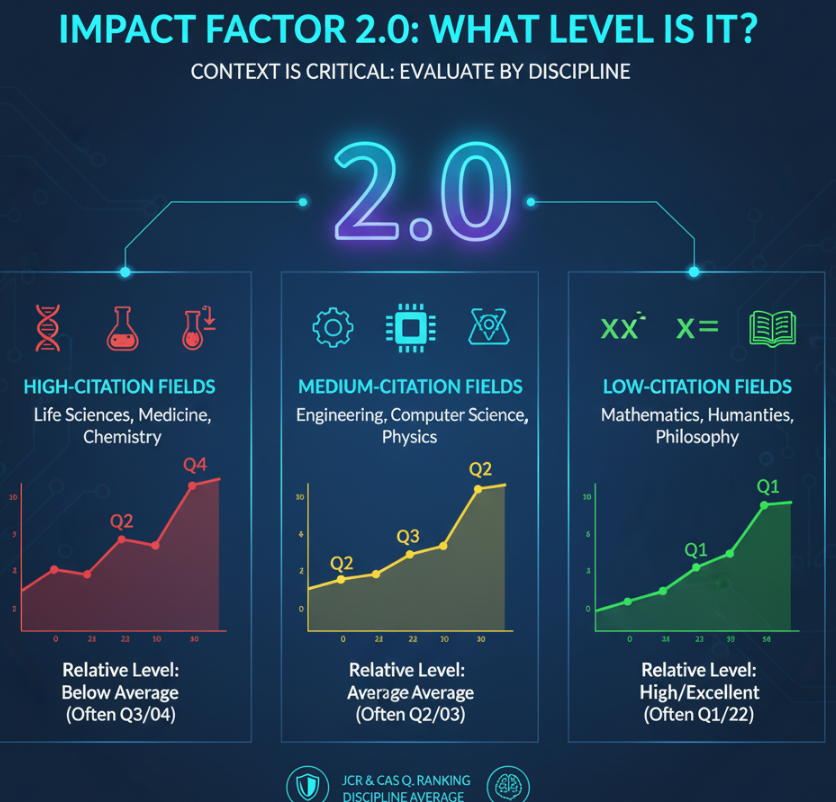 影响因子2.0的期刊,其水平没有绝对的定论。在引用率高的学科,它可能属于中下水平;但在引用率低的学科,它可能已经相当优秀。因此,科研人员在评估期刊时,切勿“唯影响因子论”,而是要将其置于具体的学科背景下,并结合期刊分区、学术声誉、同行评审质量等多方面因素进行综合考量,才能做出最客观和准确的判断。