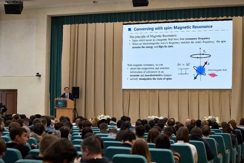 图2:杜江峰作题为“Electron spin resonance from spin ensemble to single spin”的颁奖会报告