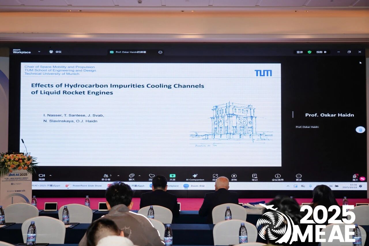 Oskar J. Haidn教授报告《Effects of Methane Impurities in Liquid Rocket Engine Cooling Channels》,探讨甲烷燃料火箭再生冷却通道中杂质对热管理的影响。研究强调在新一代高性能火箭设计中必须考虑燃料杂质对传热与结构安全的影响。
