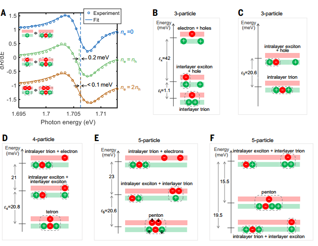 尽管理论预测在强耦合e-h双层结构中存在三粒子和四粒子e-h复合体,但它们的实验实现一直难以捉摸。这主要是因为Trion的结合能较小,需要极强的e-h耦合极限才能在热平衡状态下自发形成。