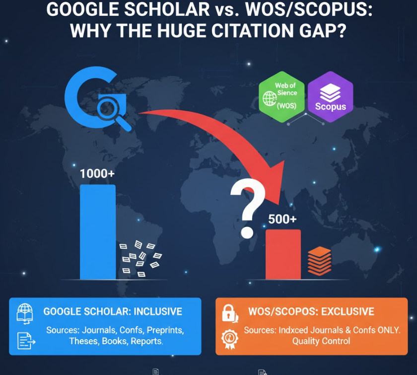 对于每一位学者而言,引用次数是衡量学术影响力的核心指标。但一个普遍现象是:Google Scholar (谷歌学术) 上显示的引用次数,几乎总是远远高于 Web of Science (WOS) 和 Scopus 数据库。