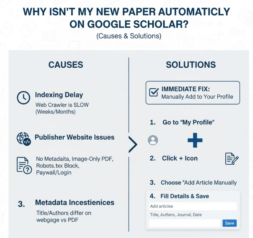 不要被动等待!您可以立即采取一个非常有效的步骤:手动将论文添加到您的个人 Google Scholar 主页。