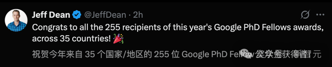 谷歌DeepMind首席科学家Jeff Dean送上了祝贺。