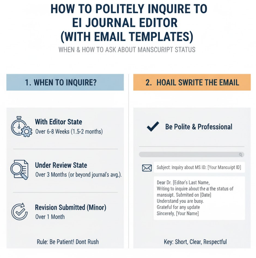 向 EI 期刊编辑催稿(或更准确地说,“询问稿件状态”)是一件需要技巧的事情。过于频繁或语气不当的催促可能会引起编辑的反感。