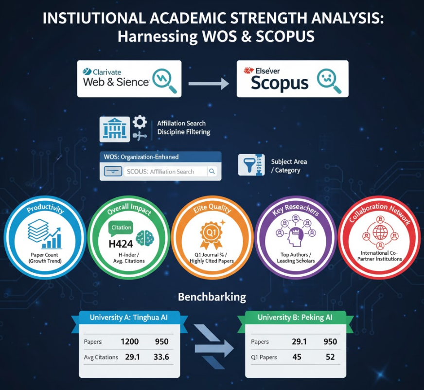 Web of Science (WOS) 和 Scopus 正是执行这种“学术尽职调查”的最权威工具。本指南将教您如何利用这两大数据库,从“产出”、“质量”、“影响力”三个维度,深度剖析一个机构的学科实力。