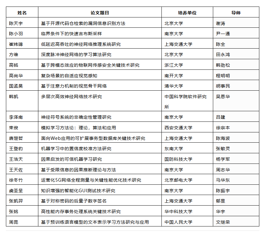 2025年度“CCF博士学位论文激励计划”初评(第一轮)入围名单如下: