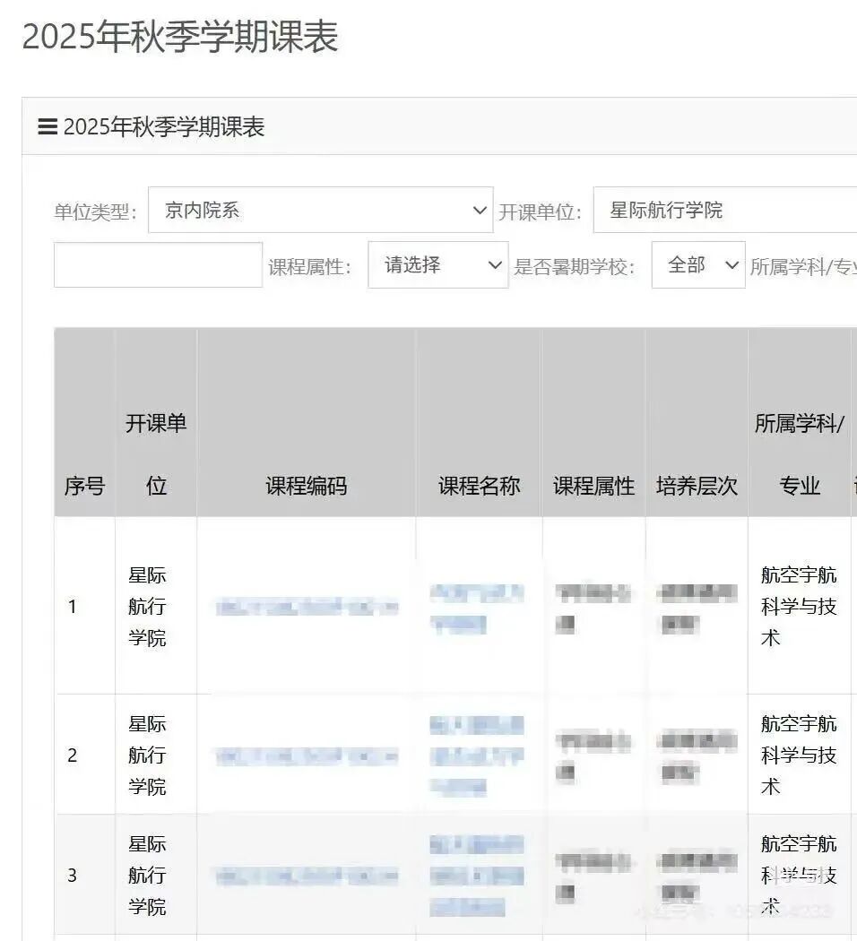 这名同学向记者出示的课表截图显示,有名为“星际航行学院”的开课单位。