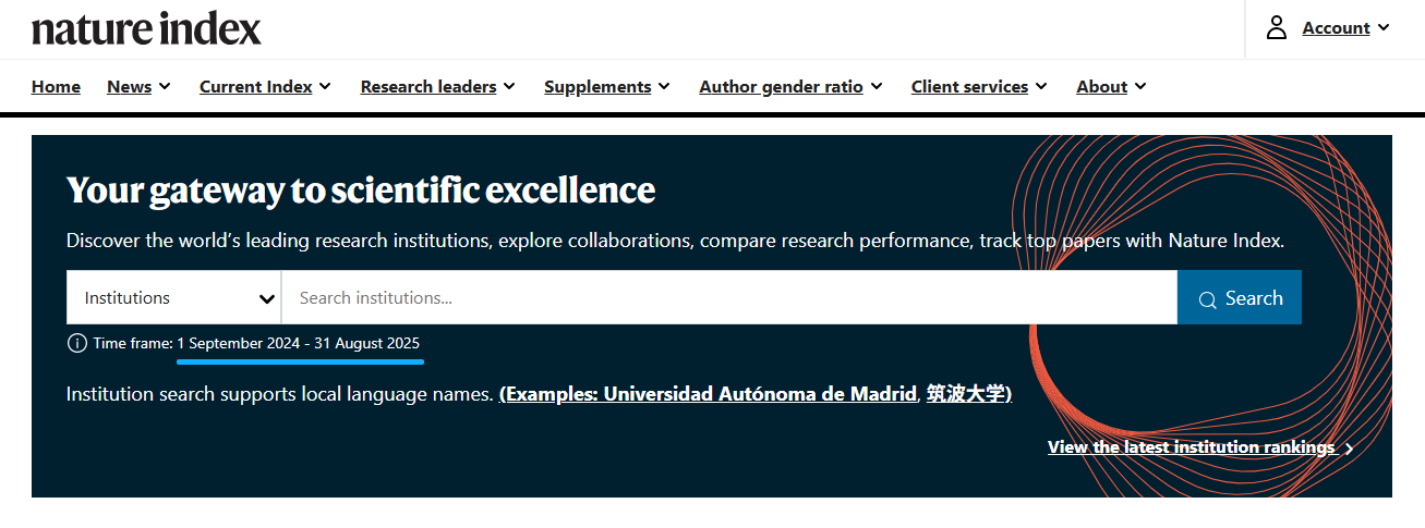 Nature Index由Springer Nature发布,追踪各机构研究者在145本独立评选的高质量自然科学和卫生科学期刊上的研究论文的贡献。