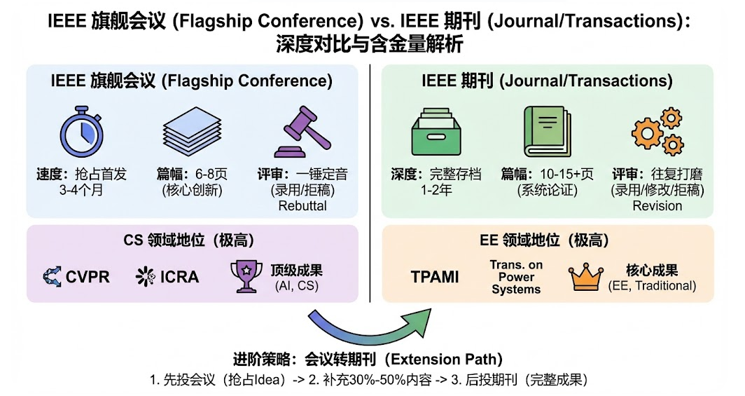 - 现状: 会议通常被视为“半成品”或“去社交的场合”。IEEE Transactions (如 IEEE Trans. on Power Systems) 才是真正的王冠。