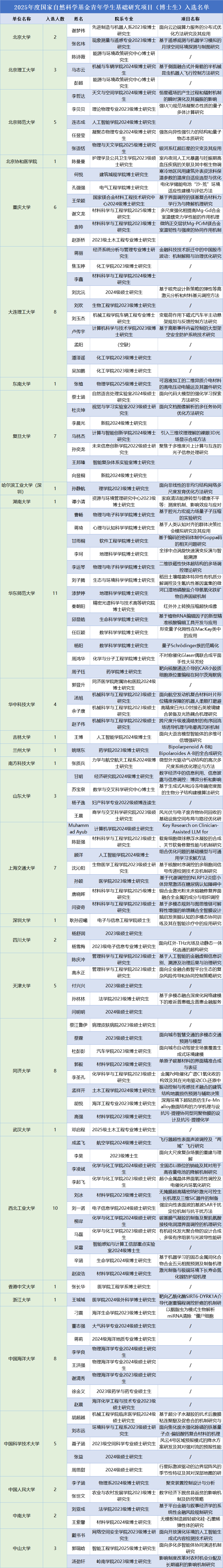 近日,国家自然科学基金委员会公布了2025年度国家自然科学基金青年学生基础研究项目(博士研究生)立项名单,国内多所院校官宣获批情况。