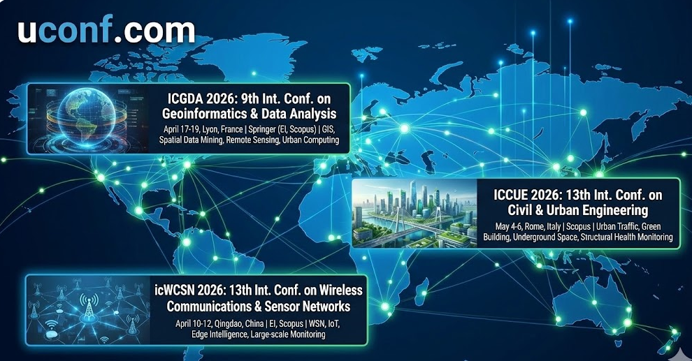 2026年的 GIS 与智慧城市相关会议主要集中在 4月至5月 召开,形成了春季学术交流的高峰。举办地点涵盖了 欧洲(法国里昂、意大利罗马) 和 东亚(中国青岛)。