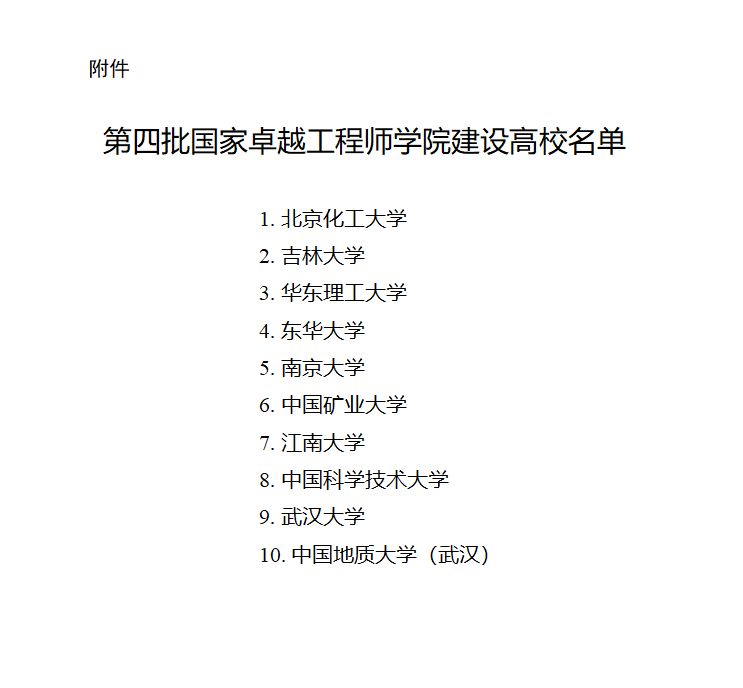 12月19日,为深入贯彻党的二十大和二十届历次全会精神、落实中央人才工作会议和全国教育大会精神,深化工程硕博士产教融合培养改革,加快培养卓越工程师,根据《教育部办公厅 国务院国资委办公厅关于支持部分高校和中央企业试点共建国家卓越工程师学院的通知》(教研厅函〔2022〕9号),经商国务院国资委,决定支持部分高校(见附件)与企业共建第四批国家卓越工程师学院。