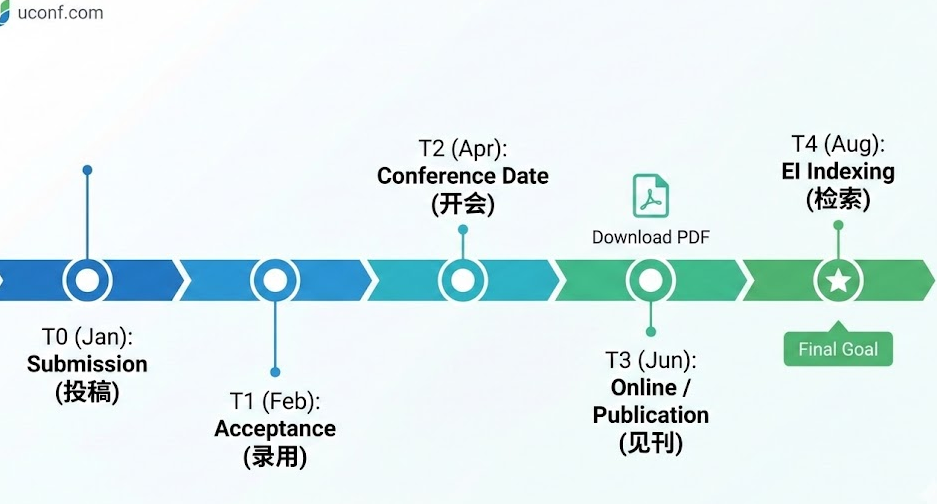 结论:从投稿到最终 EI 检索,正规会议的最快周期通常为 会议召开时间 + 3到5个月。