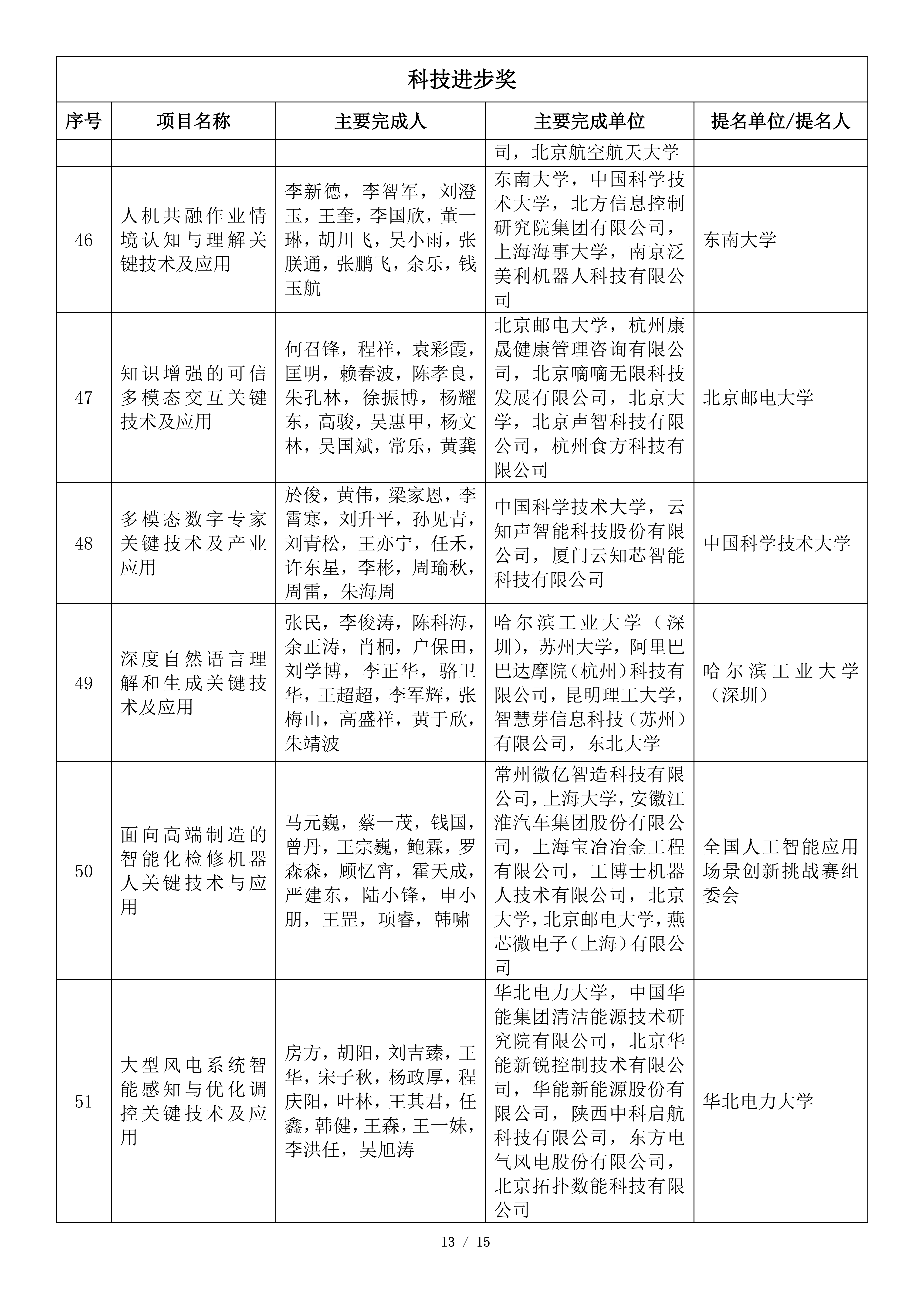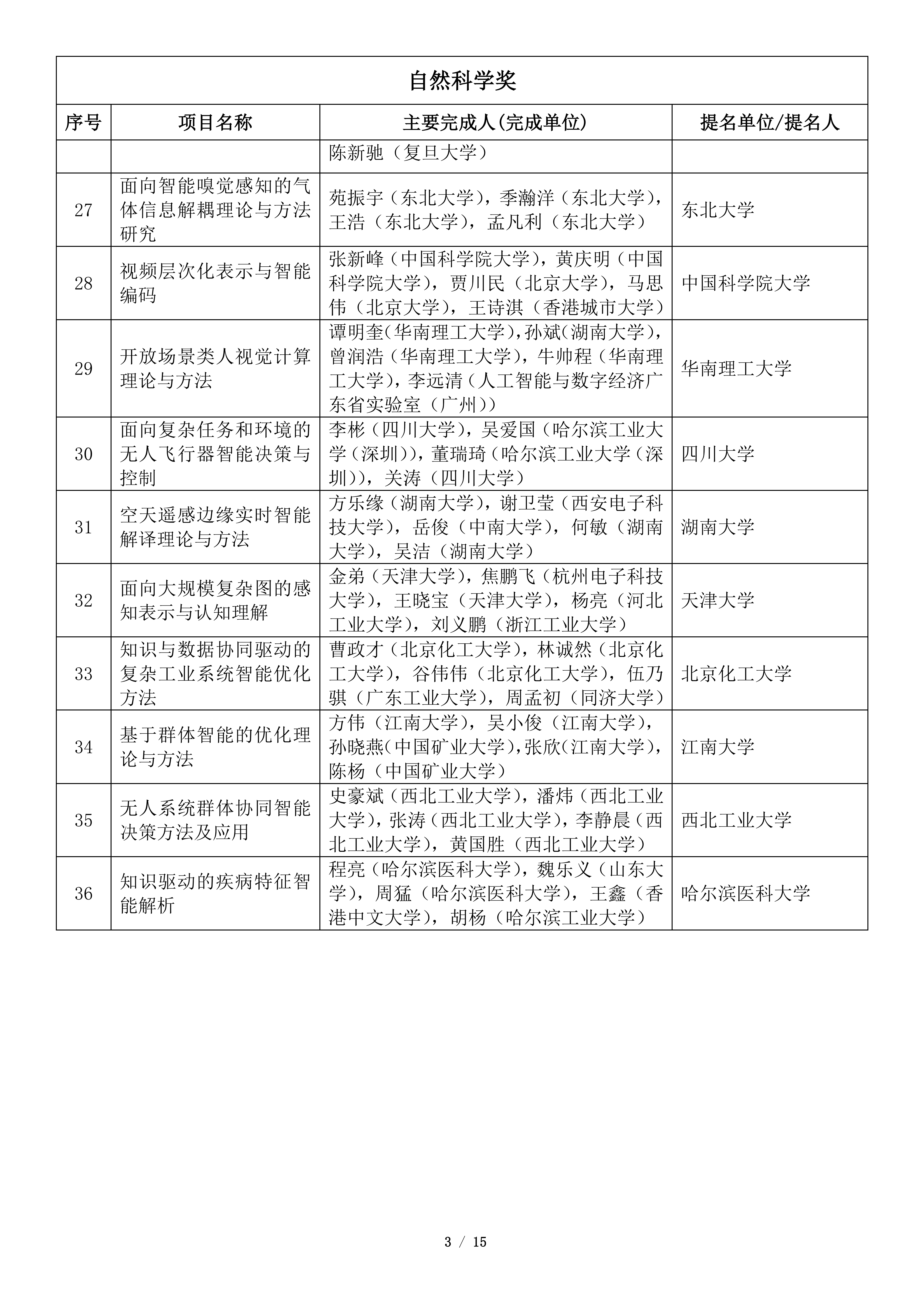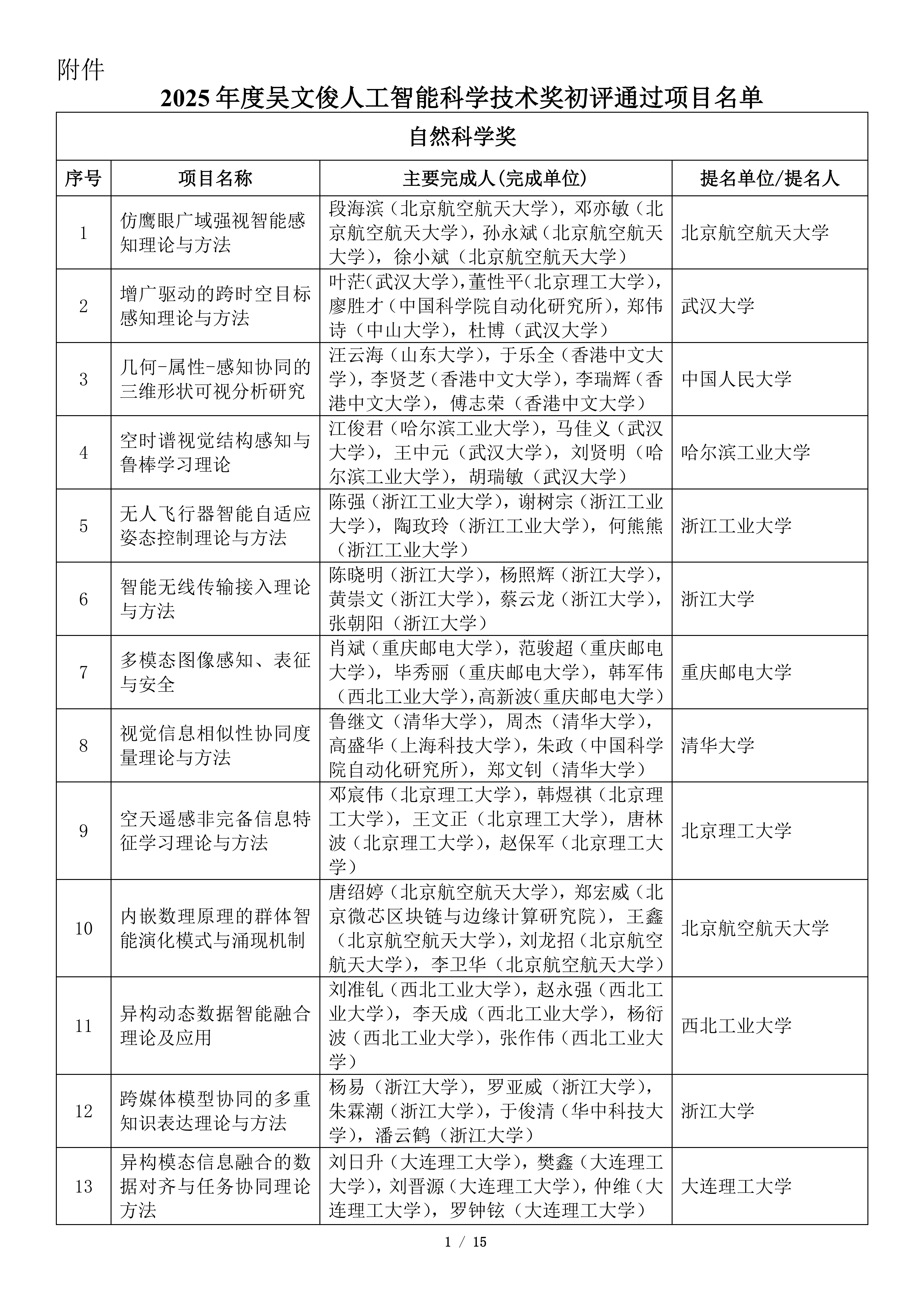 2025年度吴文俊人工智能科学技术奖初评通过项目名单如下: