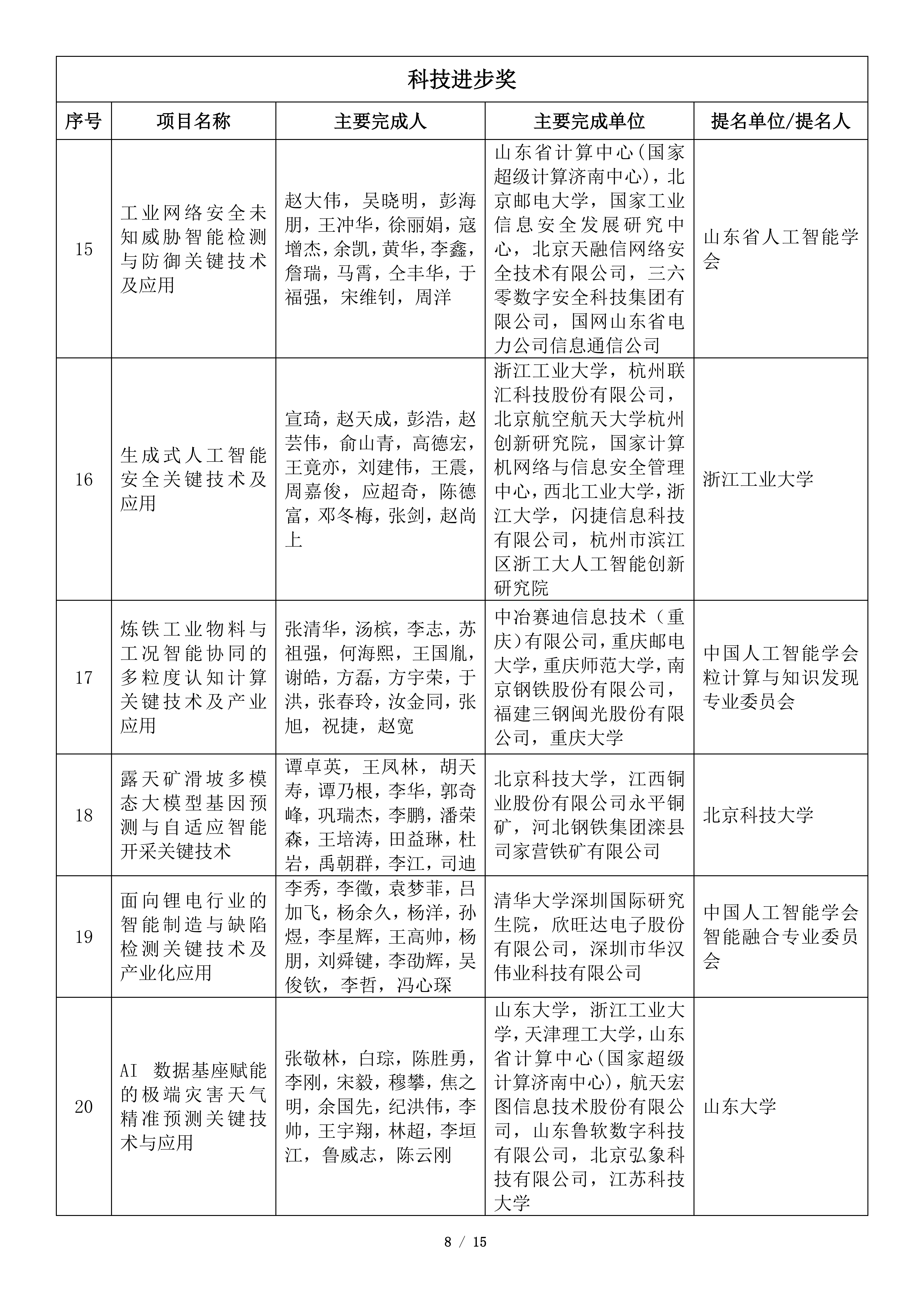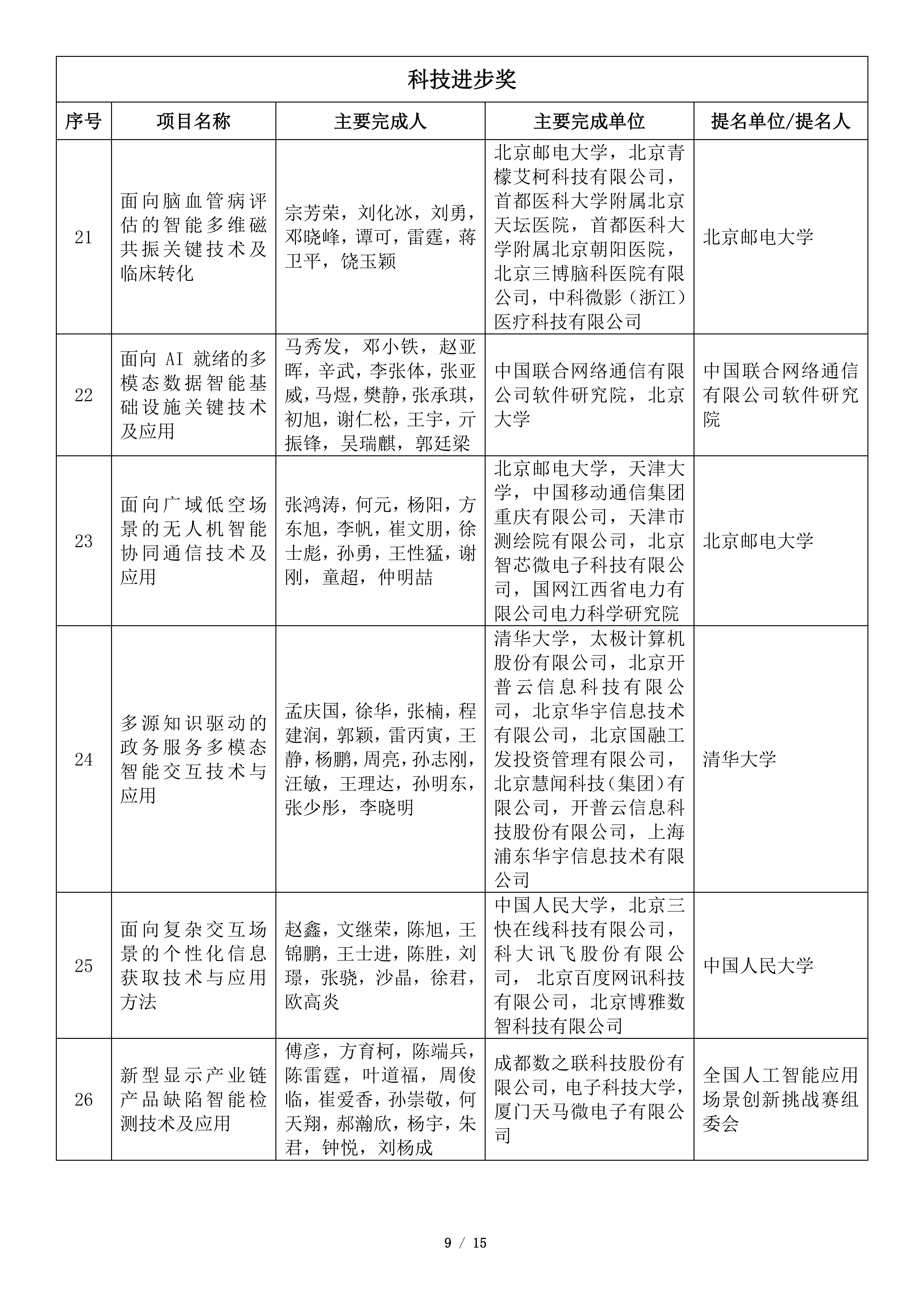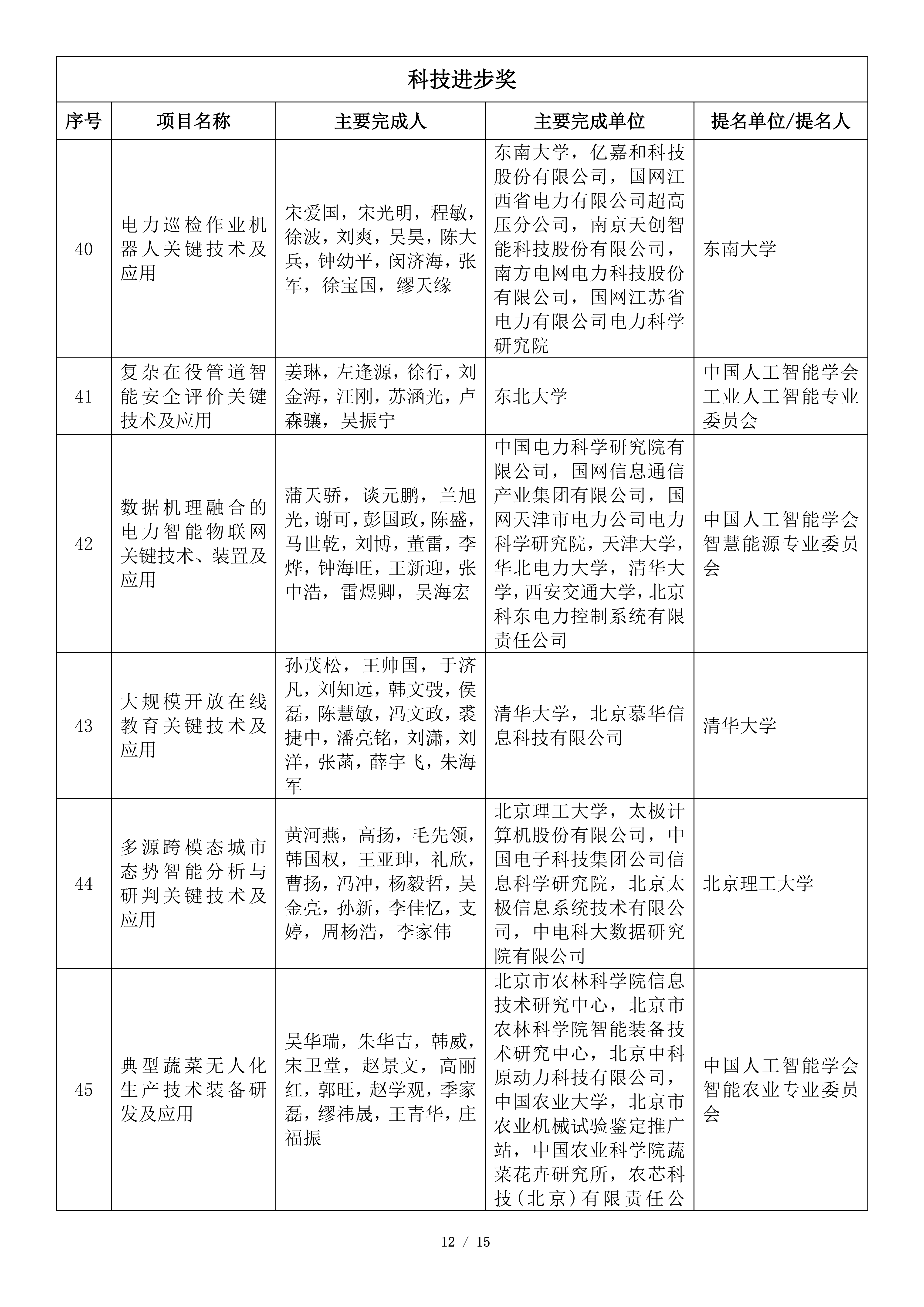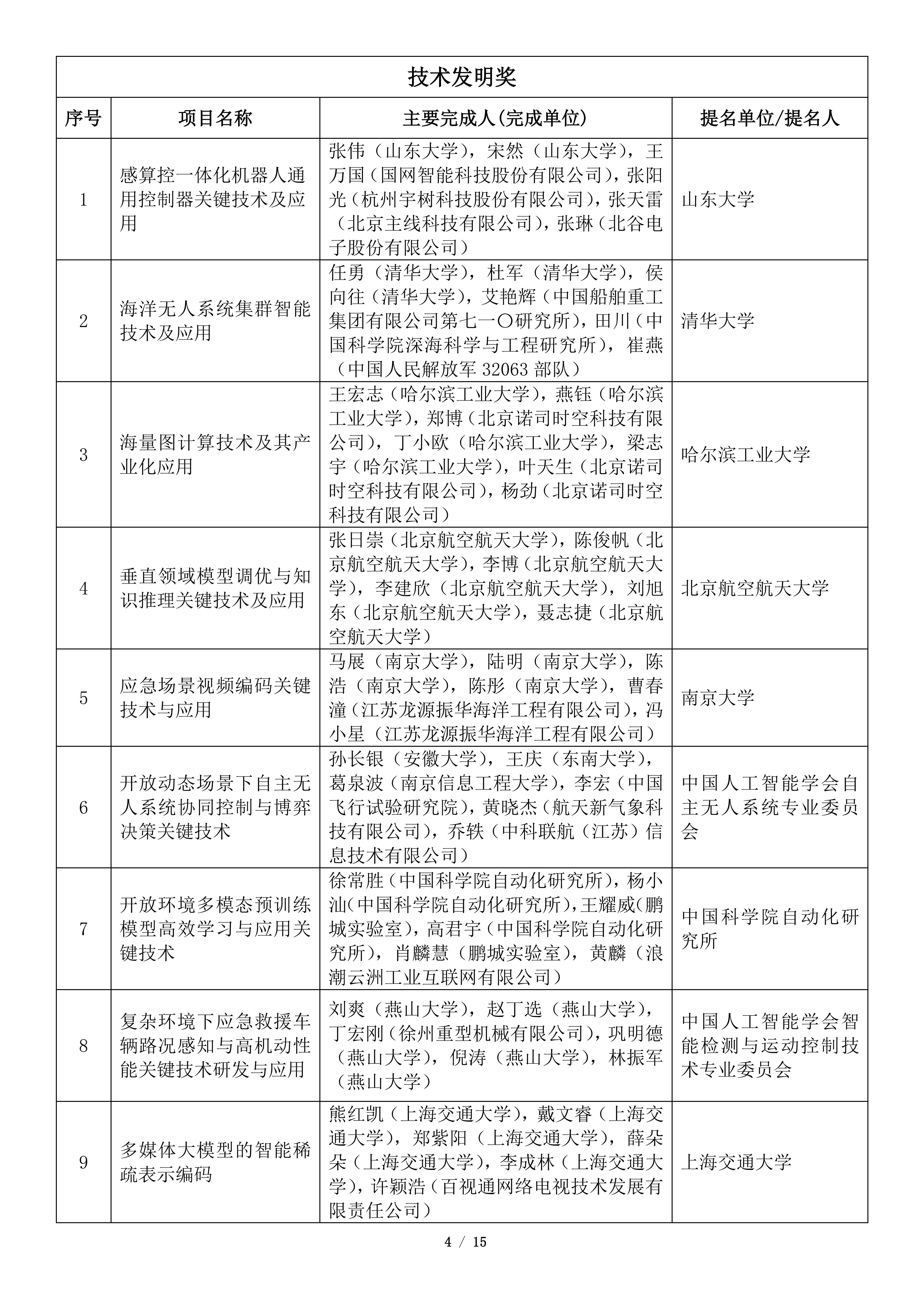 2025年度吴文俊人工智能科学技术奖初评通过项目名单如下: