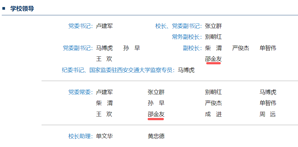 近日,西安交通大学官网“学校领导”一栏更新后显示,邵金友已任西安交通大学党委常委、副校长。