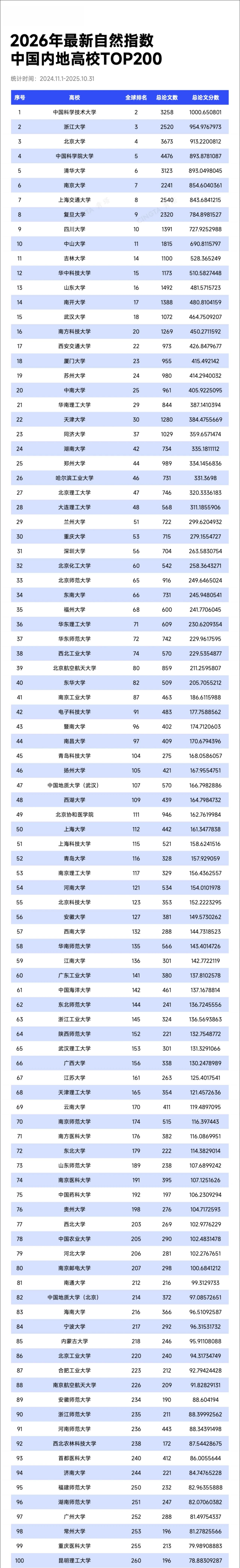 近日,自然指数官网更新了最新的自然指数排名(统计时间节点为2024.11.1-2025.10.31)。