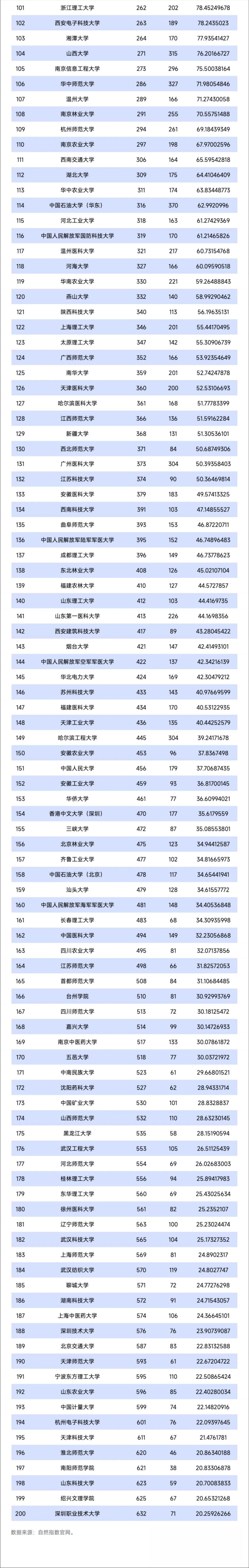 非“双一流”高校中,深圳大学、南京工业大学、青岛科技大学、扬州大学、西湖大学、青岛大学、广东工业大学、浙江工业大学、江苏大学、天津理工大学、南方医科大学、山东师范大学等高校表现亮眼,进入全球高校前200。