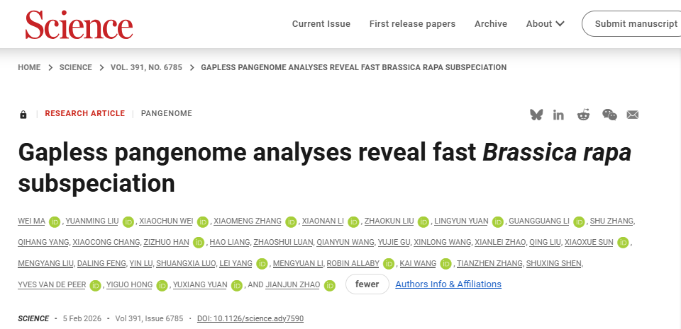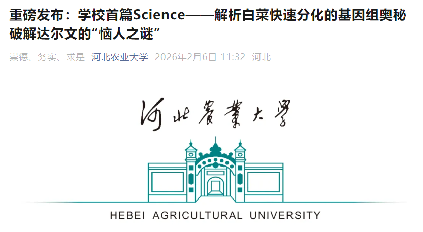 据河北农业大学2月6日报道,该校赵建军团队联合国内外多家科研机构,以堪称“作物界快速进化的范例”白菜为研究对象,从基因组层面给出了破解“达尔文恼人之谜”的中国实践。国际顶尖学术期刊Science刊发了该团队的研究成果“Gapless pangenome analyses reveal fast Brassica rapa subspeciation”。河北农业大学报道时提到,这是学校首篇Science。
