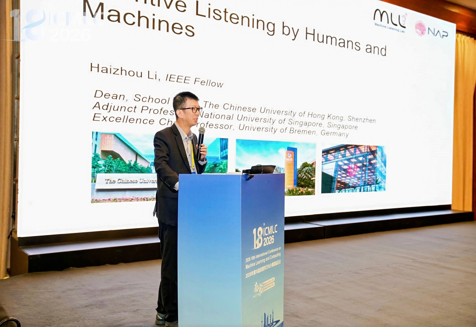 香港中文大学(深圳)李海洲教授(IEEE Fellow, SAF Fellow, lSCA Fellow):在题为《Distinguished Lectures in Humanities: Attentive Listening by Humans and Machines》的报告中,聚焦人机听觉注意力机制,分享了深度学习在语音分离与说话人提取方面的最新进展。