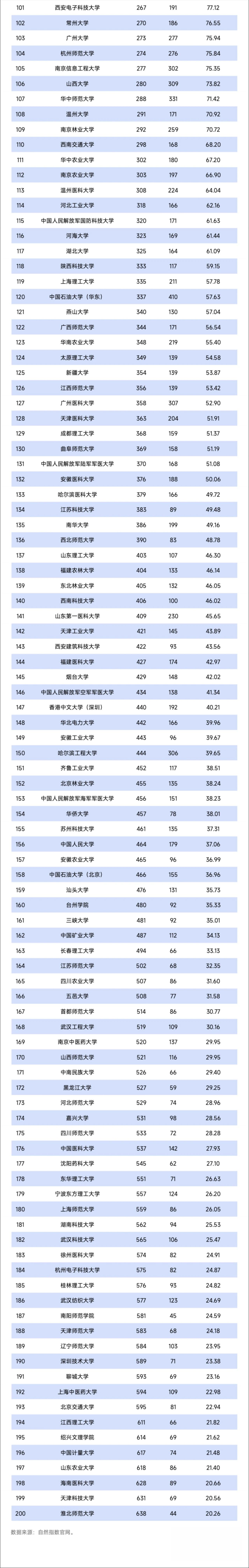 非“双一流”高校中,深圳大学、南京工业大学、西湖大学、扬州大学、青岛科技大学、青岛大学、广东工业大学、浙江工业大学、江苏大学、南方医科大学、天津理工大学、山东师范大学等高校表现亮眼,进入全球高校前200。