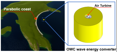 抛物线型聚能海岸聚焦点布置OWC波浪能发电装置