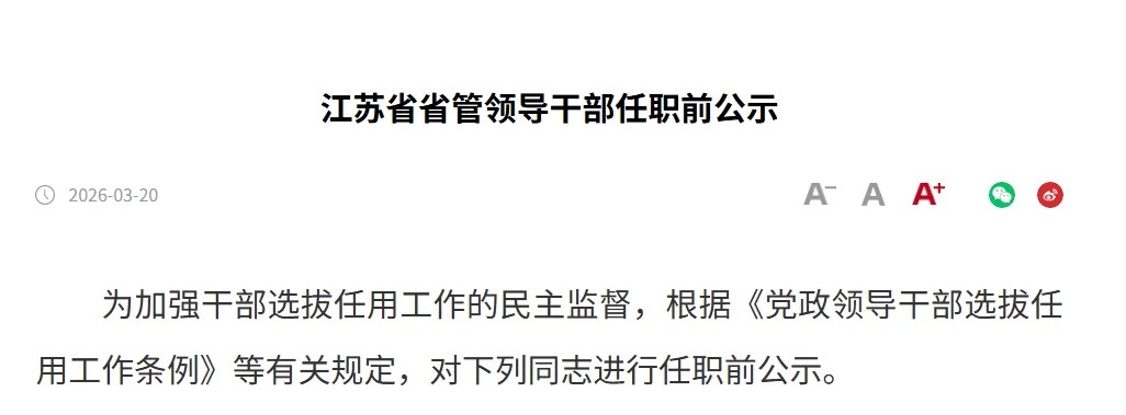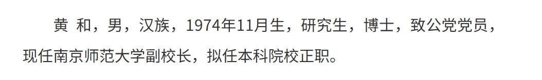 此前3月20日,中共江苏省委组织部发布《江苏省省管领导干部任职前公示》。其中,中国工程院院士、南京师范大学副校长黄和,拟任本科院校正职。