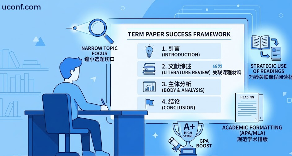 毕业论文是为了证明你具备独立研究的能力,而 Term Paper 的核心目的只有一个:向导师证明你这学期认真听课了,并且消化了课程知识。