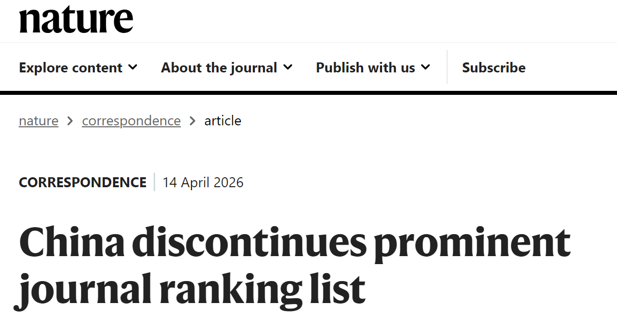 近日,针对中科院分区停止更新一事,Nature发表了相关评论,作者来自于桂林医科大学。