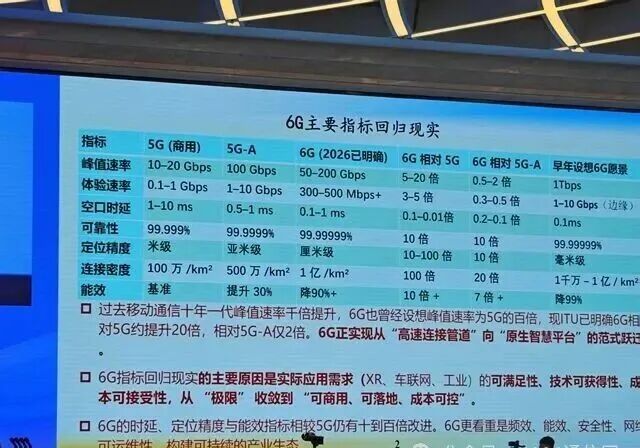 在邬贺铨看来,6G指标回归现实的主要原因是实际应用需求(XR、车联网、工业)的可满足性、技术可获得性、成本可接受性,从“极限”收敛到“可商用、可落地、成本可控”;但与此同时,6G的时延、定位精度与能效指标相较5G仍有十到百倍改进。“6G更看重是频效、能效、安全性、网可运维性,构建可持续的产业生态。”