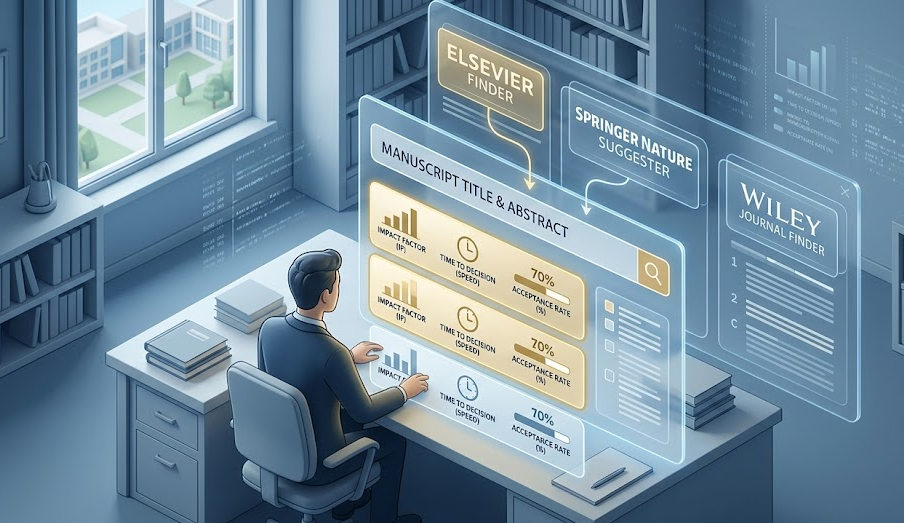 与其在海量的期刊目录里大海捞针,不如直接利用学术出版巨头们开发的官方选刊神器(Journal Finder)。只需要输入你的论文标题和摘要,AI 就能瞬间为你匹配出最对口的期刊。以下为您深度评测目前学术界最权威的 3 款选刊工具。