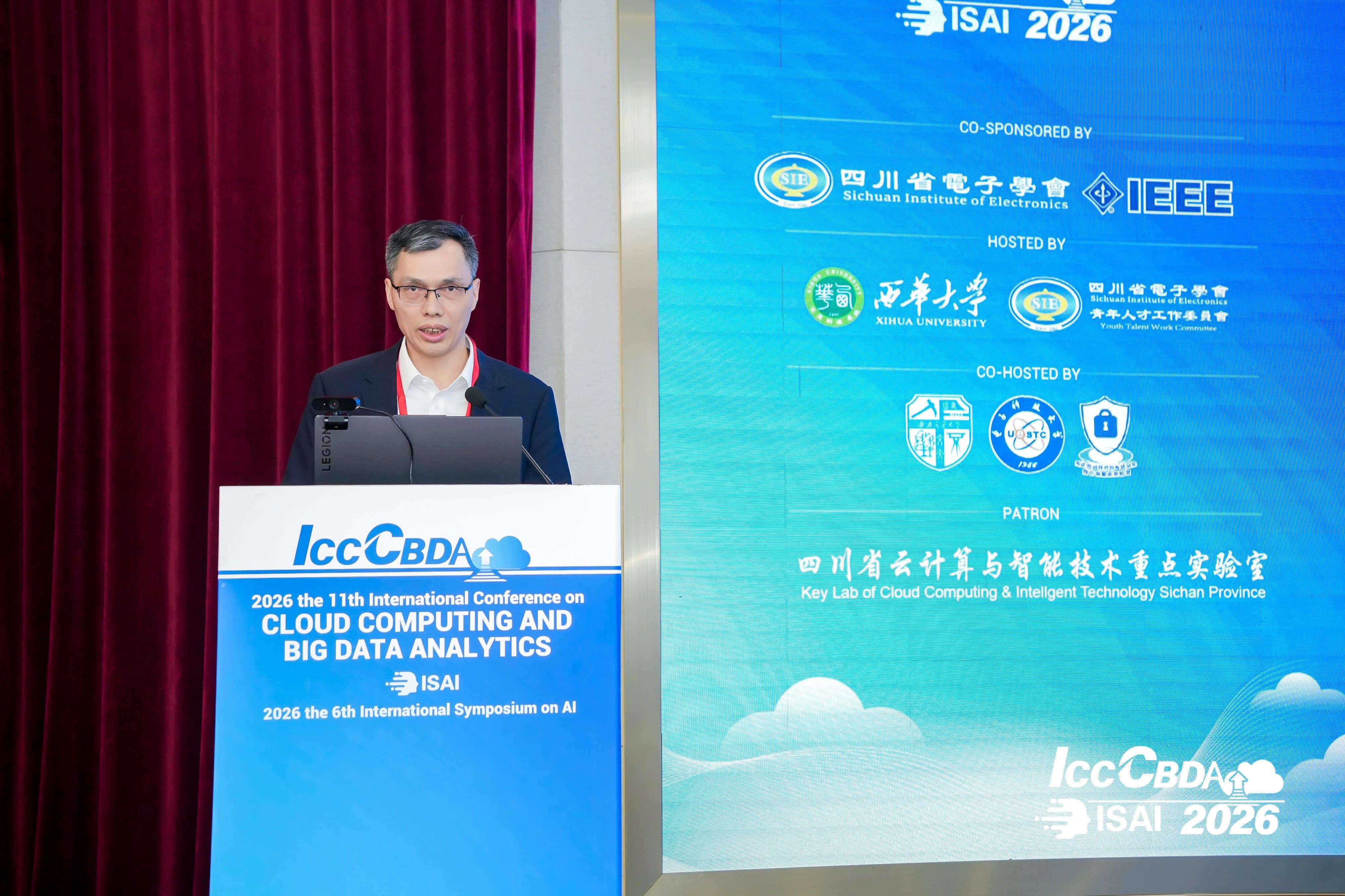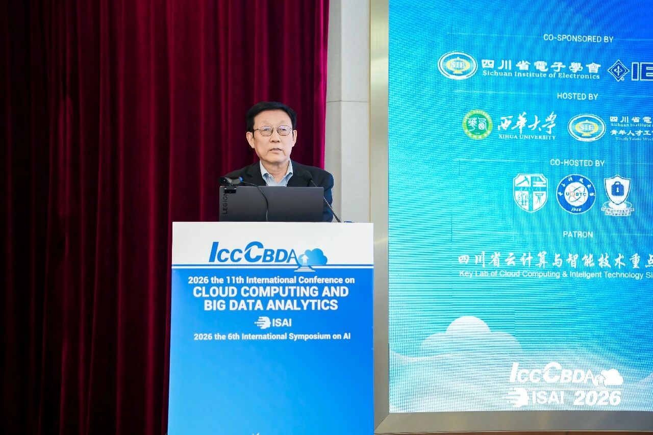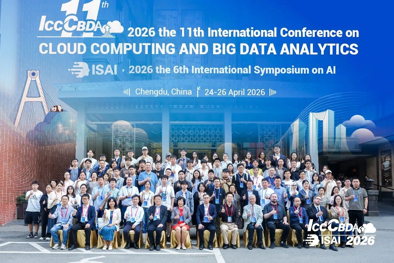 2026年4月24日至26日,第十一届云计算与大数据分析国际会议(ICCCBDA 2026)在成都召开。本次会议由四川省电子学会与IEEE联合主办,西南交通大学、电子科技大学、先进密码技术与系统安全四川省重点实验室协办,西华大学及四川省电子学会青年人才工作委员会承办,四川省云计算与智能技术重点实验室提供技术支持。第六届人工智能国际研讨会(ISAI 2026)亦同期举行。