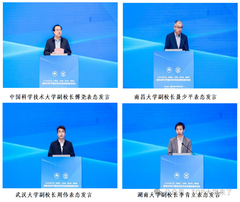 中国科学技术大学、南昌大学、武汉大学、湖南大学作为所在省份依托单位代表依次表态。各方一致承诺,将提高政治站位,主动接受监督,全面如实提供资料,对发现问题立行立改,健全长效机制,切实管好、用好财政资金。
